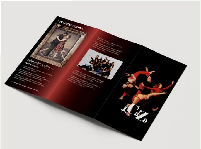 Hi, I'm Kelly! Let's Design Together! Beyond the aesthetics, my goal is to truly understand your needs and craft visuals that support your growth and satisfaction. Projects CaZo Dance Brochure/Flyer YoLove Froyo Rebrand Clarobenz+ Logo/Packaging SpyxFamily Web Design Pain in the Glass Postcard Social Media Design Plant-Based Eating Exhibit Motion Graphics